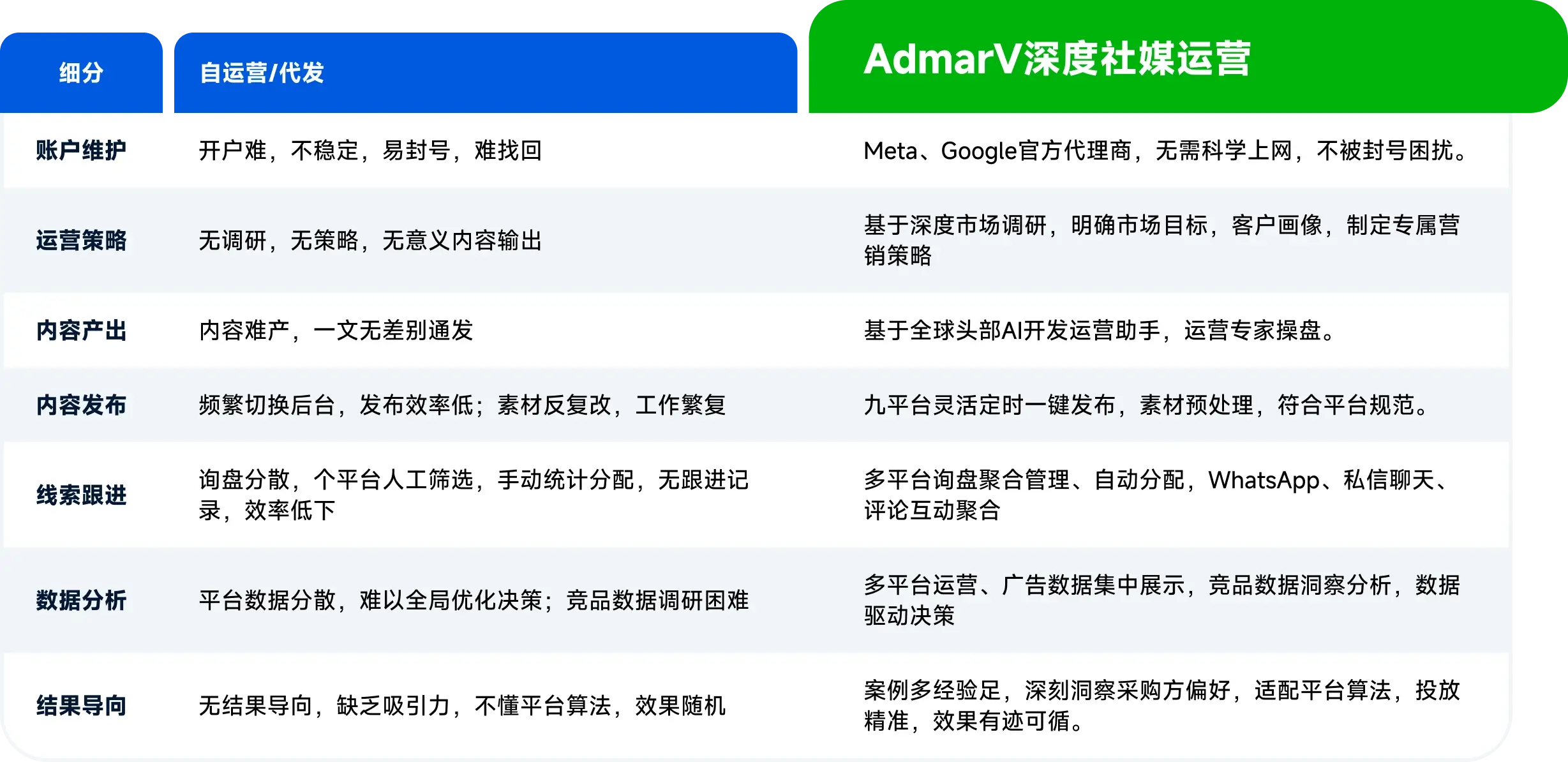 1. 深度定制化社媒运营策略。