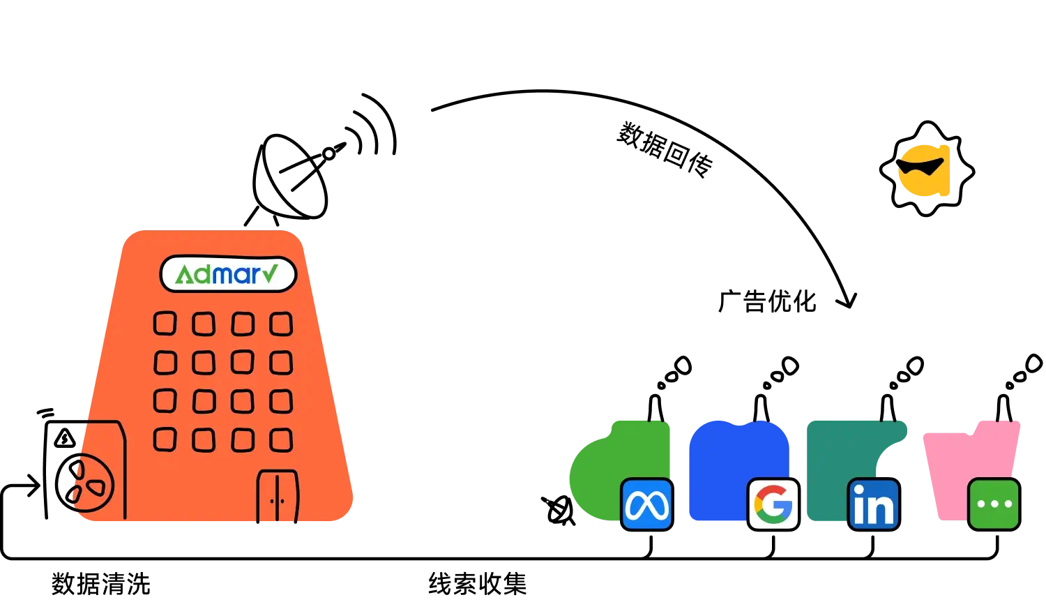 反哺广告系统 将精准模型实时回传至 Google/Meta/LinkedIn 算法,指导广告系统主动寻找“更像成交客户”的人群。